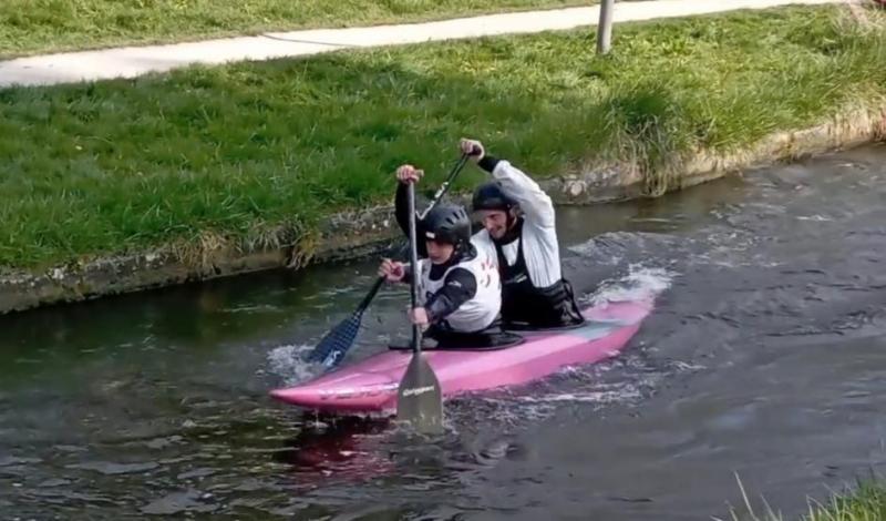 L'autre très bonne nouvelle est la victoire du canoë biplace Corentin Jan - Mathis Pomares sur chacune des deux manches. Leurs concurrents de Jarnac sont loin derrière avec des portes omises. Mathis et Corentin devront améliorer leurs franchissements lors des prochaines courses car avec 2'18''50 puis 2'16''84 ils touchent 7 puis 5 portes. C'est donc un vrai mieux lors de la seconde manche avec 6 secondes d'amélioration pénalités incluses.