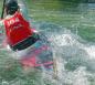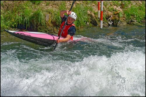 L'après-midi, sous le soleil, deux manches opposaient les pratiquants mêlant la technique du slalom dans une dizaine de portes à franchir dans le sens du courant et en sens inverse puis celle de la conduite de balle sur une trentaine de mètres avant d'aller marquer un but dans une cage située au-dessus de l'eau.
