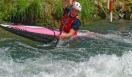 L'après-midi, sous le soleil, deux manches opposaient les pratiquants mêlant la technique du slalom dans une dizaine de portes à franchir dans le sens du courant et en sens inverse puis celle de la conduite de balle sur une trentaine de mètres avant d'aller marquer un but dans une cage située au-dessus de l'eau.