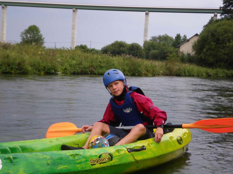 Elle est pas belle la Risle ! Isidore Dubuisson en aval du pont de l'A28 sur le chantier d'août 2009. Le groupe a échappé à l'orage du lundi 24.